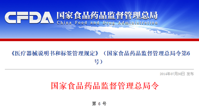 《醫(yī)療器械說明書和標(biāo)簽管理規(guī)定》已于2014年6月27日經(jīng)國(guó)家食品藥品監(jiān)督管理總局局務(wù)會(huì)議審議通過,現(xiàn)予公布,自2014年10月1日起施行。
