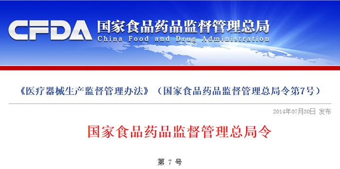 《醫(yī)療器械生產監(jiān)督管理辦法》已于2014年6月27日經國家食品藥品監(jiān)督管理總局局務會議審議通過,現(xiàn)予公布,自2014年10月1日起施行。