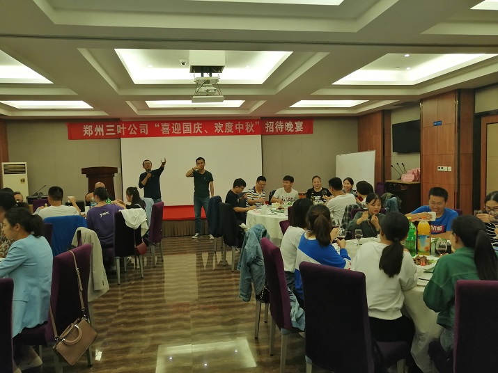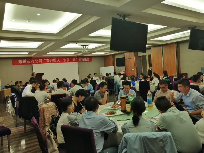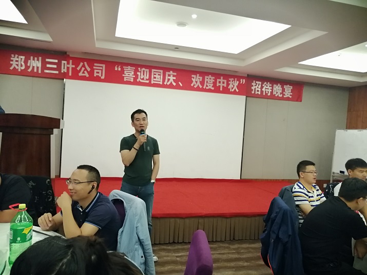 “月是故鄉(xiāng)明,今年分外圓”!2019年9月12日,恰逢雙節(jié)來臨之際,鄭州三葉公司在鄭州海天假日酒店舉行“喜迎國慶、歡度中秋”招待晚宴。在晚宴進(jìn)行過程中,各位員工爭先恐后踴躍發(fā)言,有的講述著自己與三葉公司的故事,有的描述著對(duì)未來的期待,還有的表達(dá)著自己對(duì)祖國70華誕的祝?!?/span>